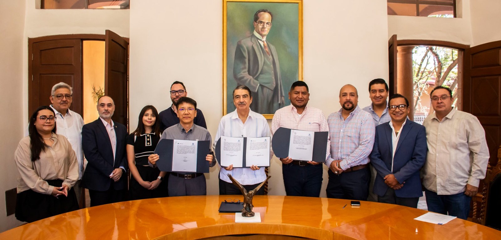 El acto protocolario se llevó a cabo en el Edificio Central de la Universidad y contó con la presencia del rector, Dr. Alejandro Javier Zermeño Guerra; el presidente municipal de Villa de Reyes, C.P. Ismael Nicolás Hernández Martínez; y el presidente de SL Mex S. de R.L. de C.V., Kyungsoo Koo.