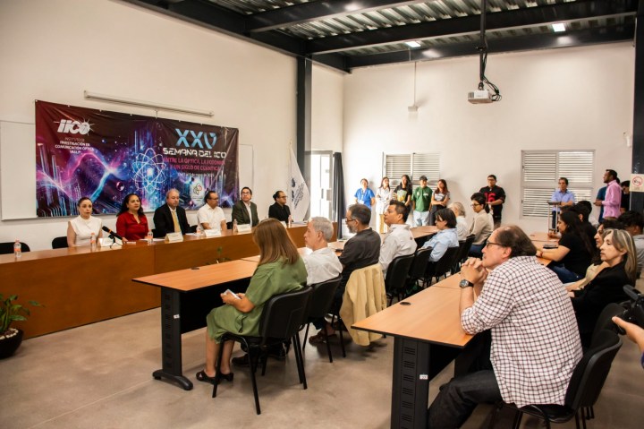 Con la presencia de autoridades universitarias, estudiantes e invitados especiales, este martes 6 de mayo se llevó a cabo la inauguración de la XXV Semana del Instituto de Investigación en Comunicación Óptica (IICO) “Entre la Óptica, la Fotónica y un Siglo de Cuántica”, misma que terminará el 9 de mayo.