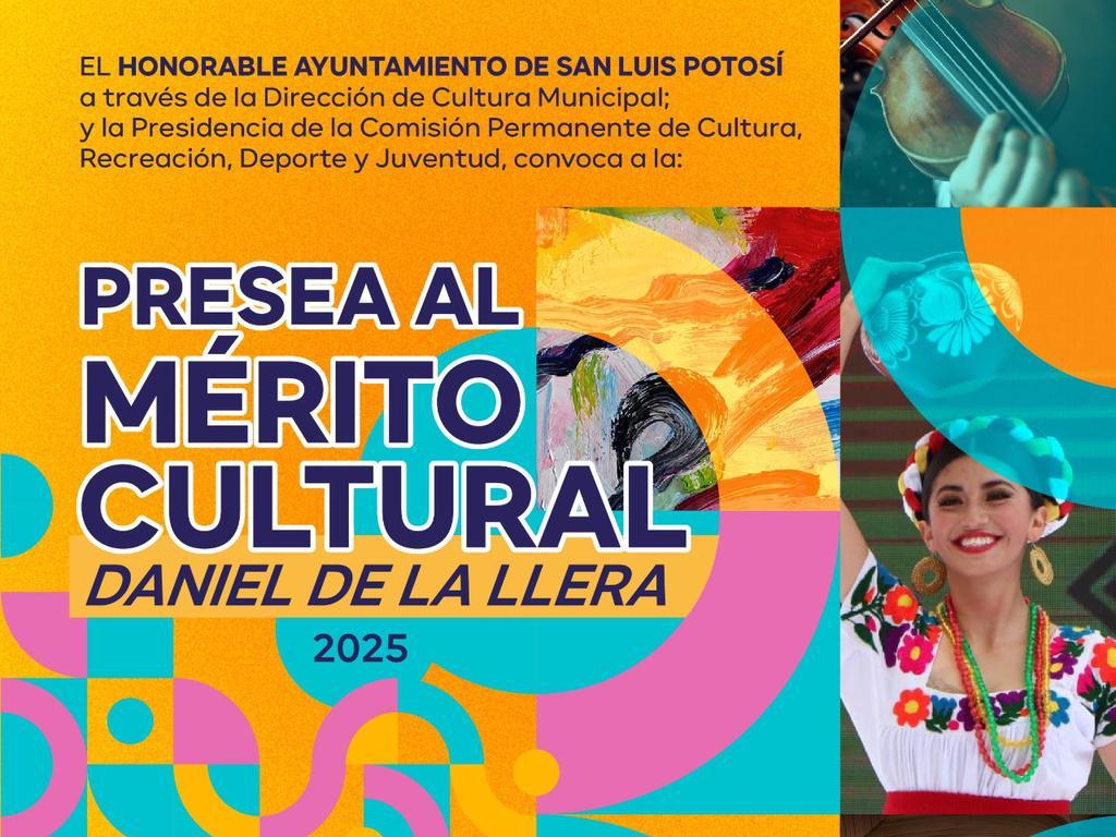 La Dirección de Cultura Municipal y la Comisión de Cultura, Recreación, Deporte y Juventud invitan a la comunidad potosina para que proponer candidaturas a recibir la Presea al Mérito Cultural Municipal “Daniel de La Llera” 2025, misma que busca reconocer personas u organizaciones que se han destacado en la gestión y promoción cultural, que han contribuido a la promoción de las artes, las tradiciones, la producción, capacitación y conocimiento de las distintas manifestaciones culturales.