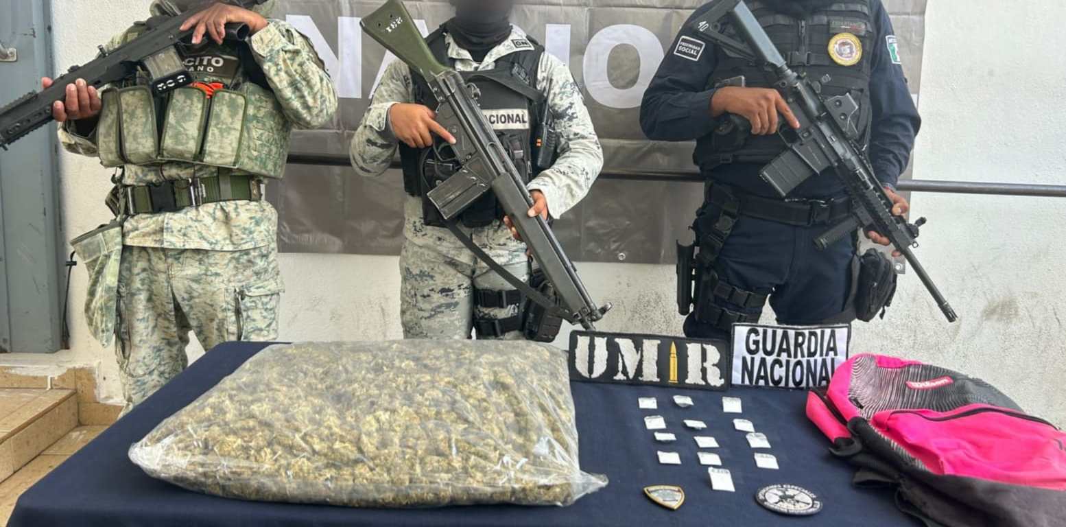 El primer hecho se registró en el marco del Operativo Base de Operaciones Mixtas (BOMI) en calles de la colonia General I. Martínez, donde los elementos municipales detectaron a un hombre en actitud evasiva, el cual al observar la presencia de las fuerzas del orden huyó dejando abandonada una mochila qué portaba.