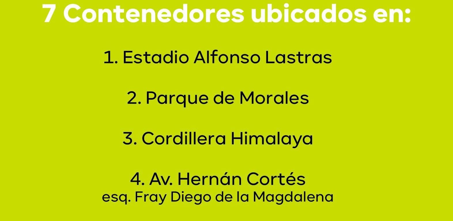 El resto de los siete que ya están en operación se ubican en avenida Hernán Cortés esquina con Fray Diego de la Magdalena, Manuel J. Clouthier y otro más en Cordillera Himalaya muy cerca de avenida Chapultepec. De esta manera, la Dirección de Gestión Ecológica y Manejo de Residuos busca que la población potosina se sume al depósito de residuos de forma responsable.