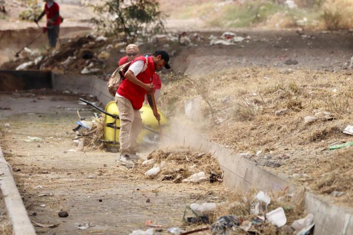 Se priorizan zonas inundables, así como áreas donde haya taponamiento de drenajes y coladeras; en el programa Capital al 100, en El Aguaje, se reafirmó la coordinación entre direcciones municipales e Interapas, así como la participación de la ciudadanía.