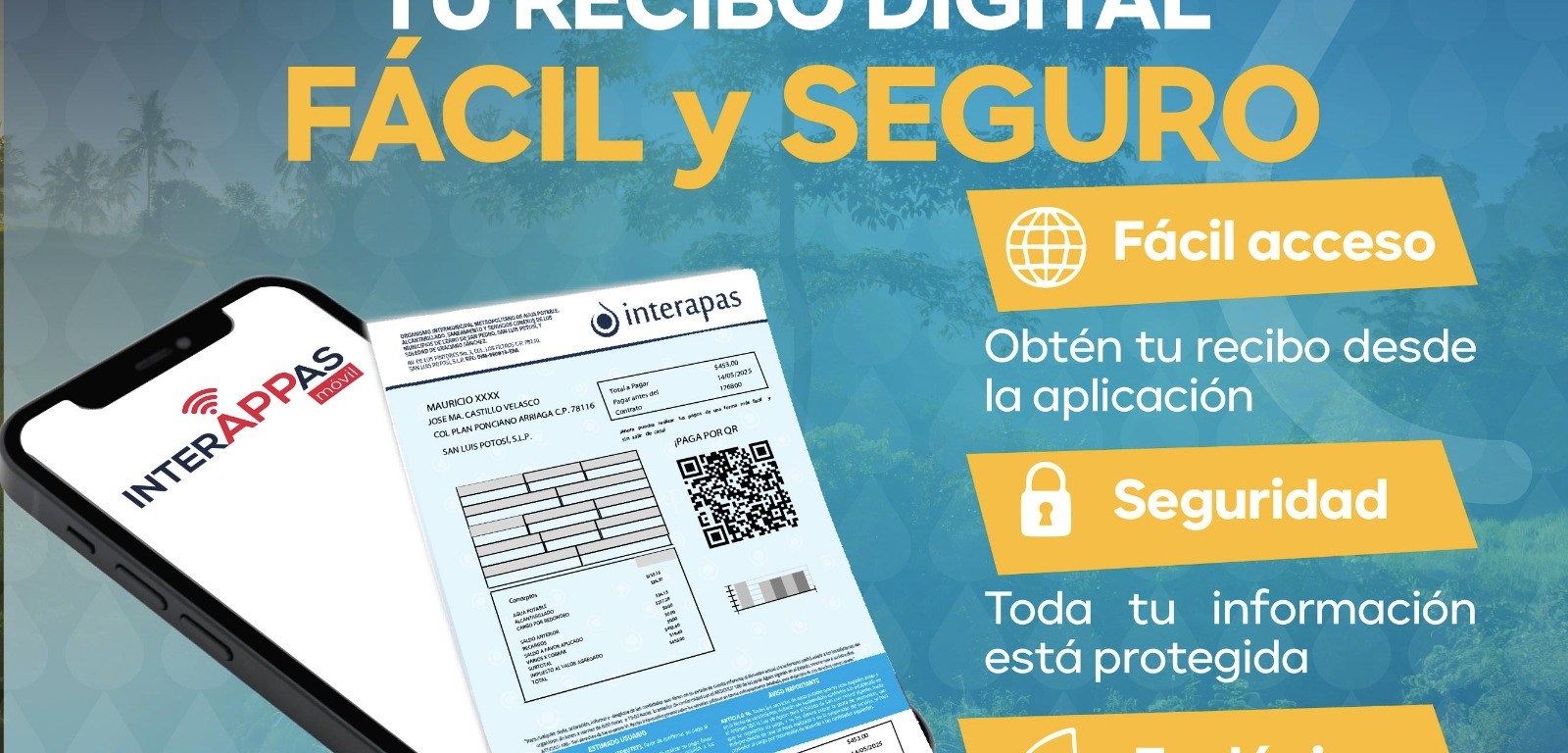 INTERAPAS fomenta la migración del recibo físico a la factura digital, con el objetivo de cuidar el medio ambiente y ofrecer un servicio más cómodo, seguro y práctico.