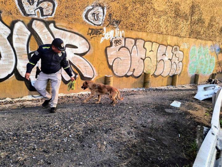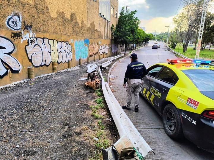 La SSPC Municipal informó que fue la tarde de este lunes cuando el canino fue ubicado en la zona, visiblemente lastimado, por lo que los oficiales bajaron de la patrulla y suspendieron temporalmente la circulación para resguardarlo.