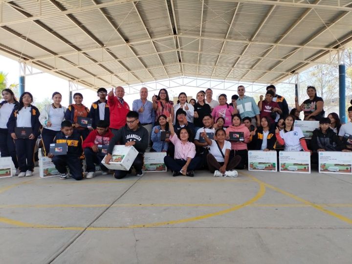 La Presidenta y la Directora del Sistema Municipal DIF, Estela Arriaga Márquez y Jessica Albarrán Ramírez, respectivamente, acompañadas del Director de Educación Municipal, Joel Ramírez, entregaron tablets e impresoras con el objetivo de fortalecer sus herramientas tecnológicas y mejorar sus condiciones de estudio y vida.