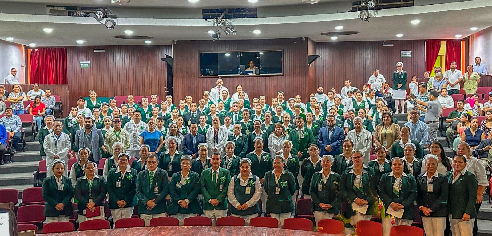 En la ceremonia estuvieron presentes el secretario general de la Sección XVIII del Sindicato Nacional de Trabajadores de Seguro Social (SNTSS), doctor Claudio Salazar Hernández; la encargada de la Jefatura de Prestaciones Médicas, doctora Carmen López Sierra; la jefa de Enfermería del Segundo Nivel de Atención Médica, Maribel Navarro Torres, y la de Primer Nivel de Atención Médica, Rafaela Osornio Paredes.