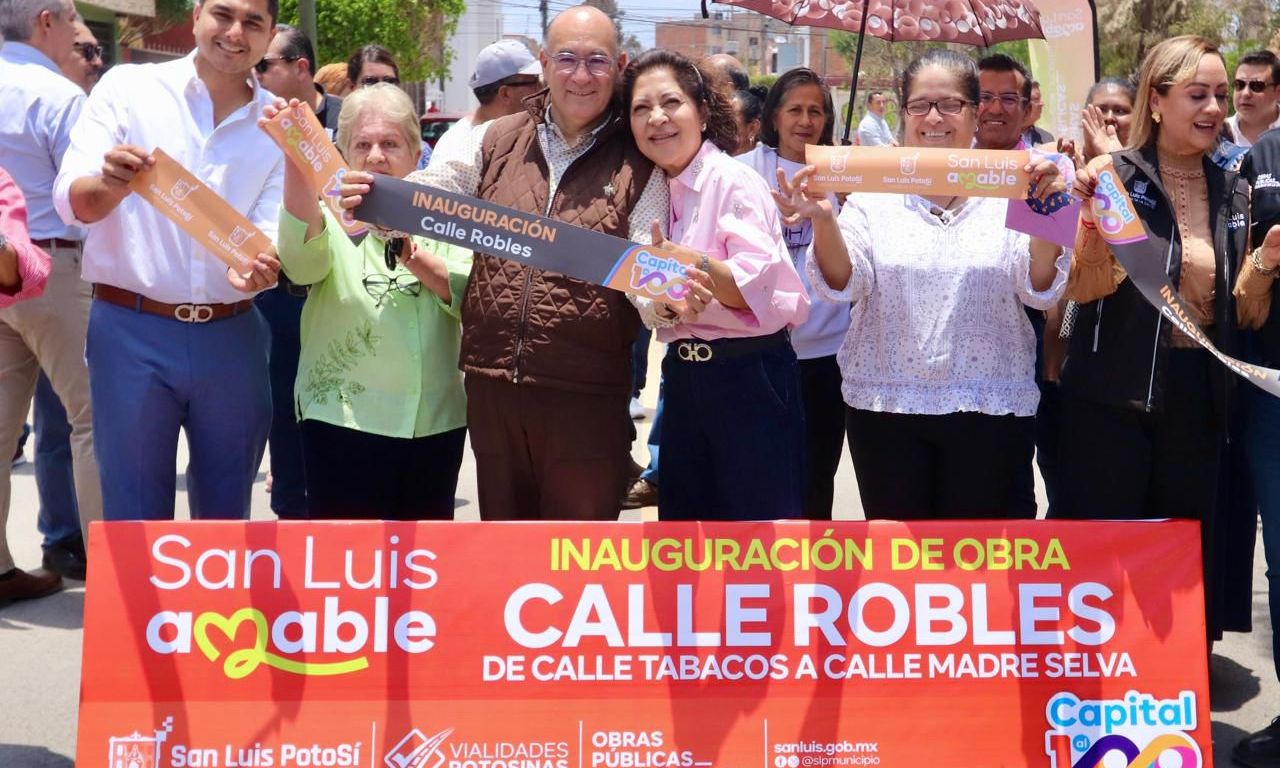 La calle Robles, en la colonia Tecnológico, fue transformada con nuevo pavimento, nuevas líneas de agua con tomas domiciliarias y drenaje, banquetas y rampas para personas con discapacidad.