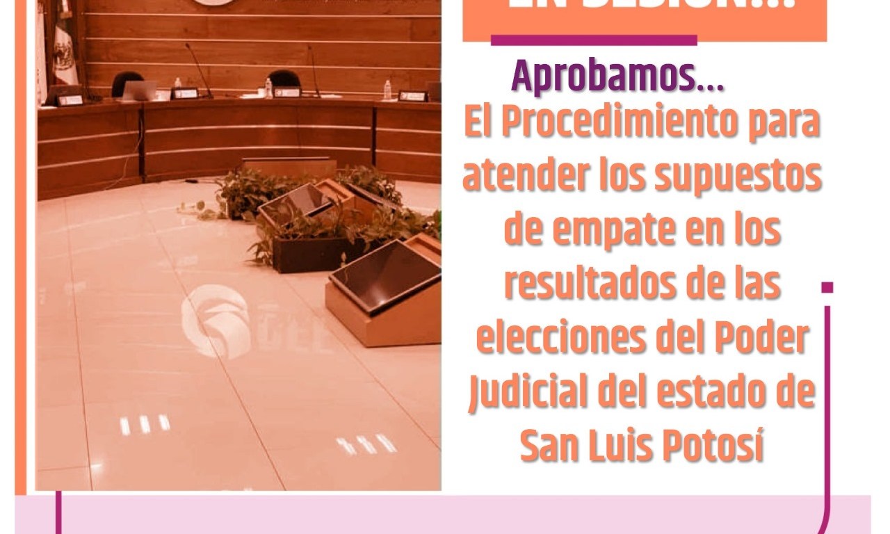 En sesión del Consejo General del Consejo Estatal Electoral y de Participación Ciudadana (CEEPAC), se aprobó el Procedimiento para atender los supuestos de empate en los resultados de las elecciones del Proceso Electoral Local Extraordinario 2025 para la elección de personas juzgadoras del Poder Judicial del estado de San Luis Potosí.