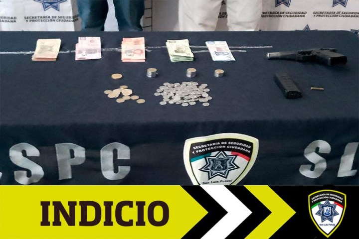 Tras la detención en flagrancia se realizó la revisión preventiva al primer detenido, de nombre Víctor “N” de 19 años, quien portaba la cantidad de 5 mil 458 pesos en billetes y monedas de distintas denominaciones, dinero que sustrajo de la caja del comercio. En tanto, el segundo detenido, de nombre Juan José “N” de 33 años, fue encontrado en posesión de un arma de fuego calibre .22 abastecida con 11 cartuchos útiles.
