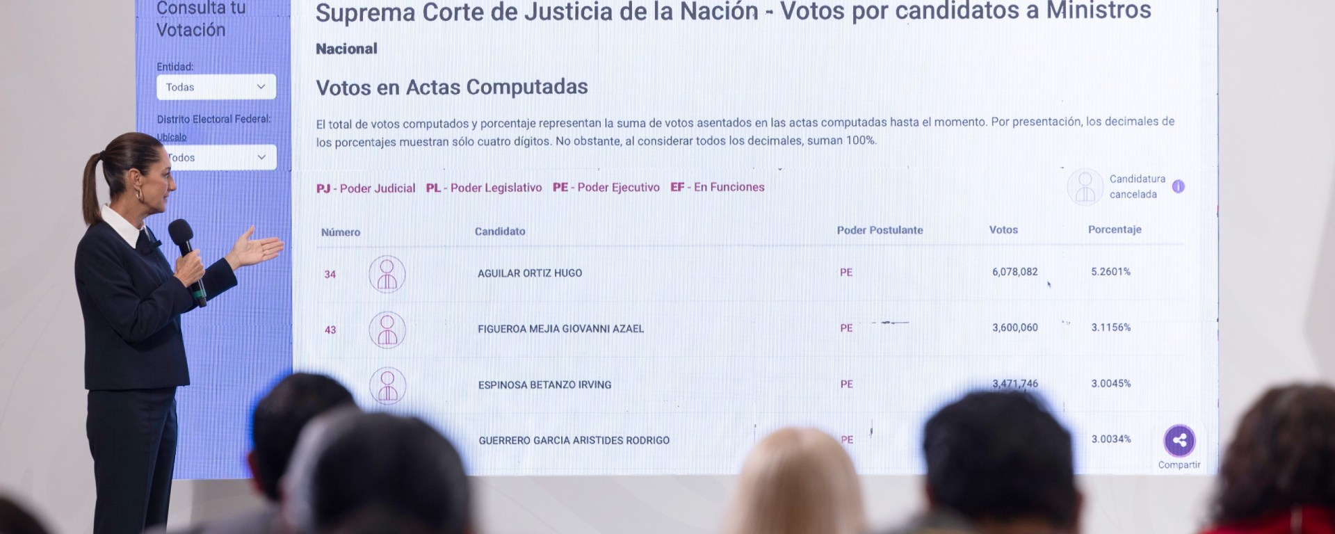 Puntualizó que la elección democrática del Poder Judicial fue un suceso inédito en el que participaron cerca de 13 millones de personas que decidieron quienes conformarán la Suprema Corte de Justicia de la Nación (SCJN) y al Poder Judicial en su conjunto.