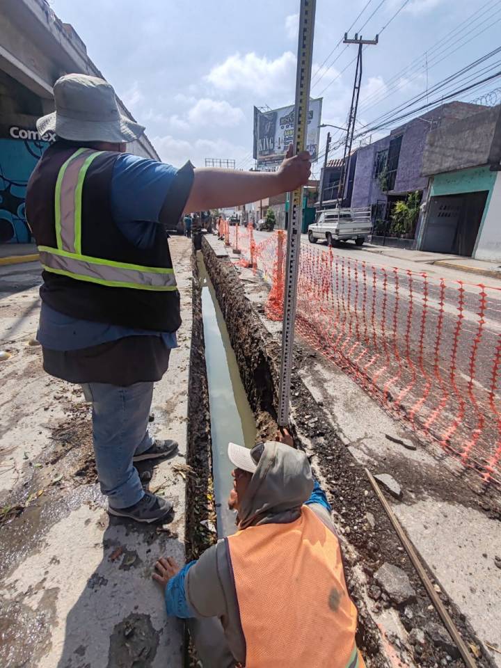 A menos de una semana de haber iniciado la obra, INTERAPAS registra un avance significativo en la rehabilitación de la red sanitaria ubicada en la lateral de avenida Salvador Nava, entre las calles Xicoténcatl y León García del barrio San Juan de Guadalupe.