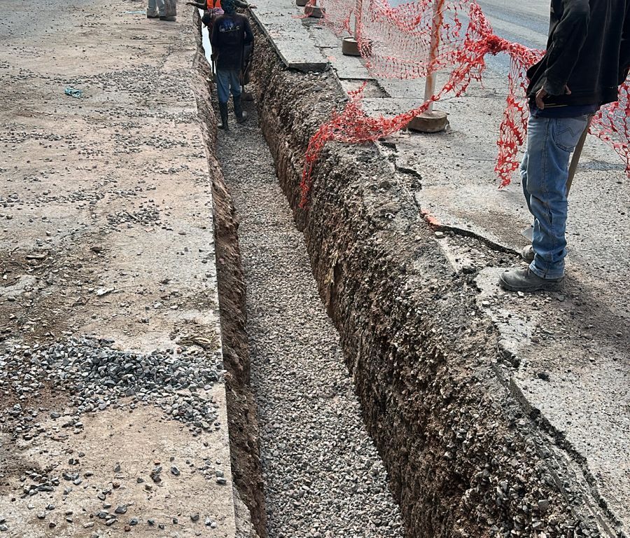 Hasta el momento se han excavado 42 metros lineales de los 100 metros proyectados, donde ya se realiza la colocación de nueva tubería PEAD de 15 pulgadas y relleno del tramo intervenido.