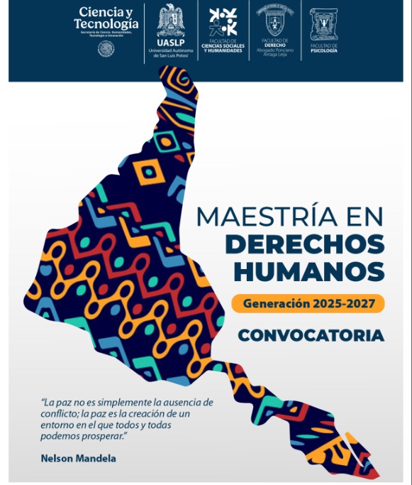 La Facultad de Derecho Abogado Ponciano Arriaga Leija de la Universidad Autónoma de San Luis Potosí (UASLP) mantiene abierta la convocatoria para la 14ª generación de la Maestría en Derechos Humanos, con ingreso en el año 2025 y egreso previsto en 2027, así lo informó en entrevista la doctora María Suhey Tristán Rodríguez, coordinadora del posgrado.