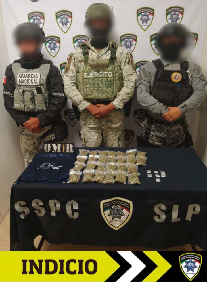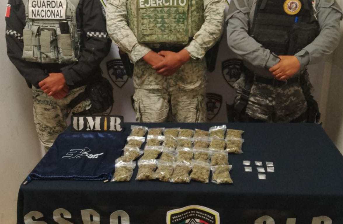 En acciones del operativo interinstitucional Base de Operaciones Mixtas (BOMI) donde participaron elementos de la 12va. Zona Militar, Guardia Nacional y de la Unidad Mixta de Intervención y Reacción (UMIR) de la Secretaría de Seguridad y Protección Ciudadana, se realizó el decomiso de varias dosis de sustancias prohibidas localizadas durante patrullajes en la colonia Arbolitos.