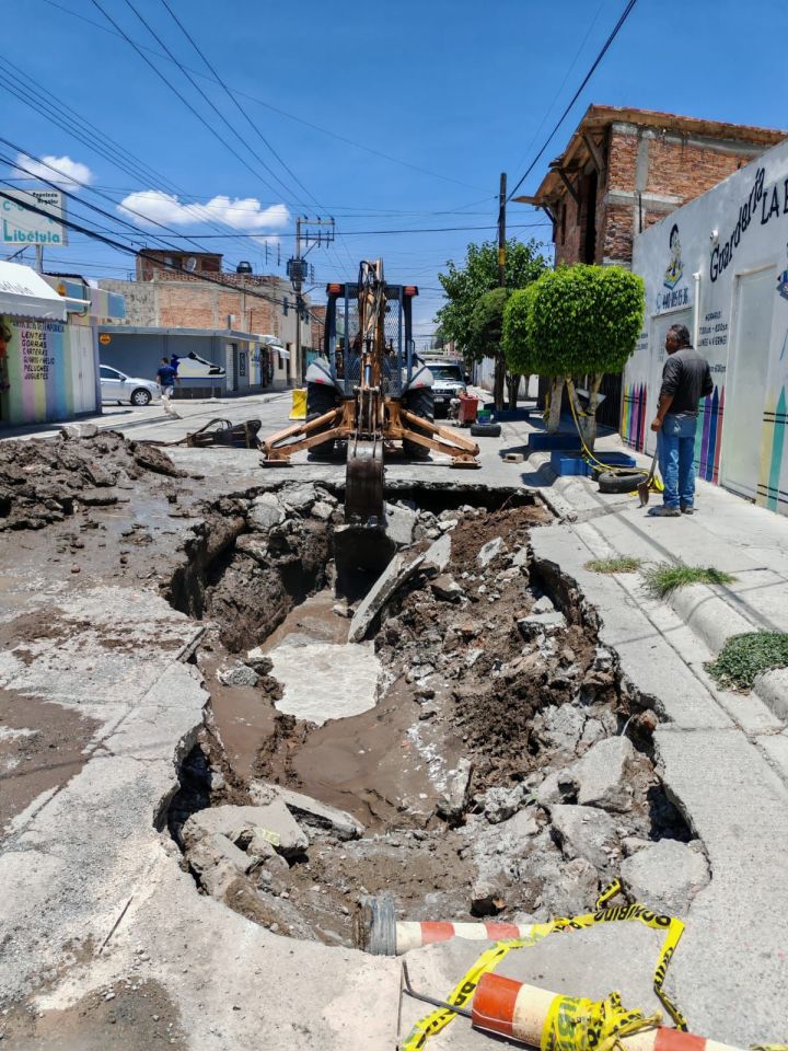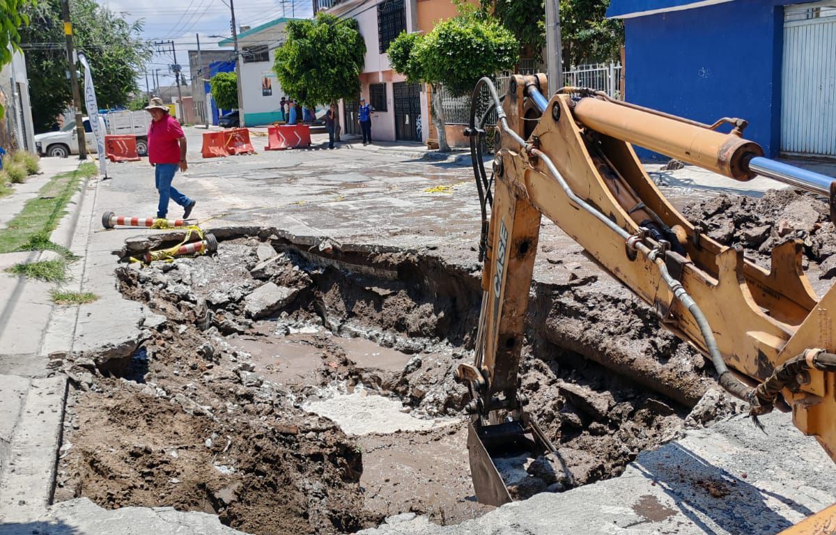 INTERAPAS continúa con los trabajos de reparación en la calle Colibrí, entre Jilgueros y Paseo de los Colorines, donde se atiende el colapso en el sistema de drenaje.