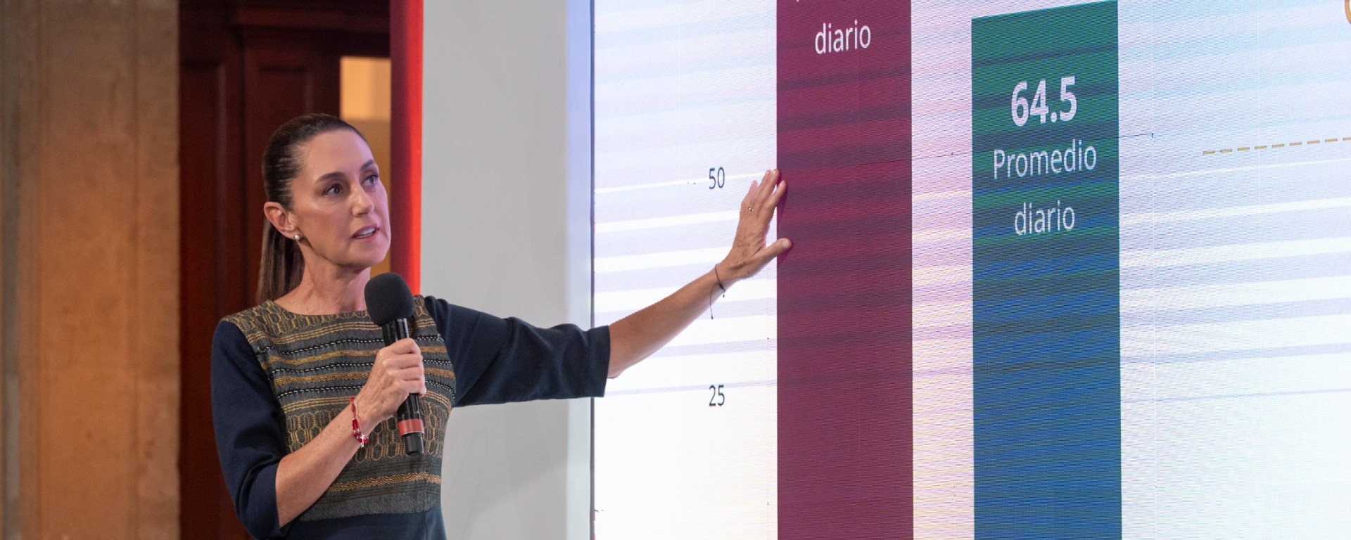 La secretaria ejecutiva del Sistema Nacional de Seguridad Pública, Marcela Figueroa Franco, explicó que el promedio mensual de septiembre de 2024 era de 86.9 homicidios diarios y en mayo de 2025 de 64.5, lo que representa una reducción en ocho meses de 25.8 por ciento. Además, de que mayo de 2025 es el mayo más bajo en cuanto a promedio de homicidios dolosos desde 2016, lo que evidencia la tendencia a la baja en dicho delito.
