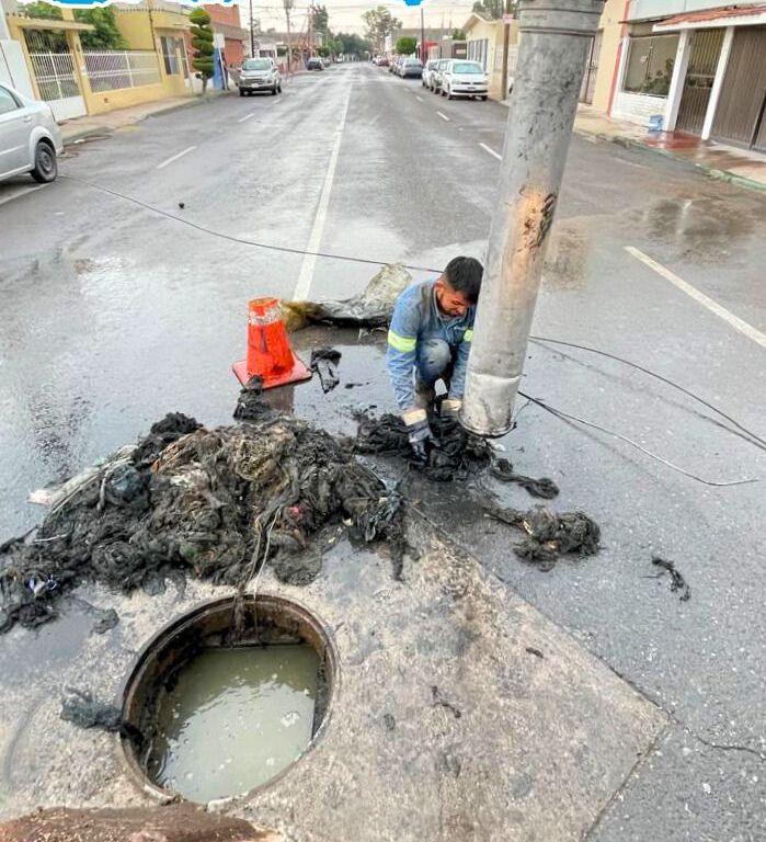En una jornada de limpieza preventiva en la Calle 2 de la colonia Industrial Aviación, personal de INTERAPAS extrajo casi 400 kilos de desechos que no deberían estar en el sistema sanitario.
