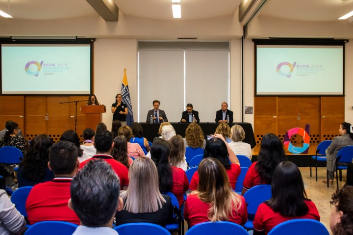 La Universidad Autónoma de San Luis Potosí (UASLP) es sede del Coloquio ECOS 2025: Experiencias Docentes, evento que inició actividades este miércoles 11 de junio y concluirá el día 13 en el Centro Cultural Universitario Bicentenario (CC200), con un programa que incluye conferencias, ponencias, presentación de carteles, mesas de diálogo y un evento cultural, como un espacio de encuentro, reflexión, inspiración colectiva y construcción conjunta.