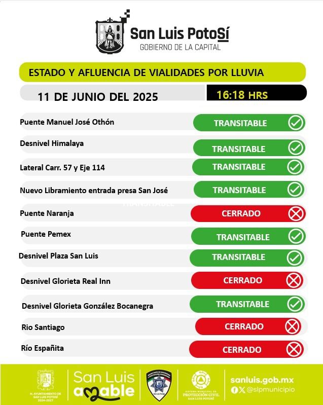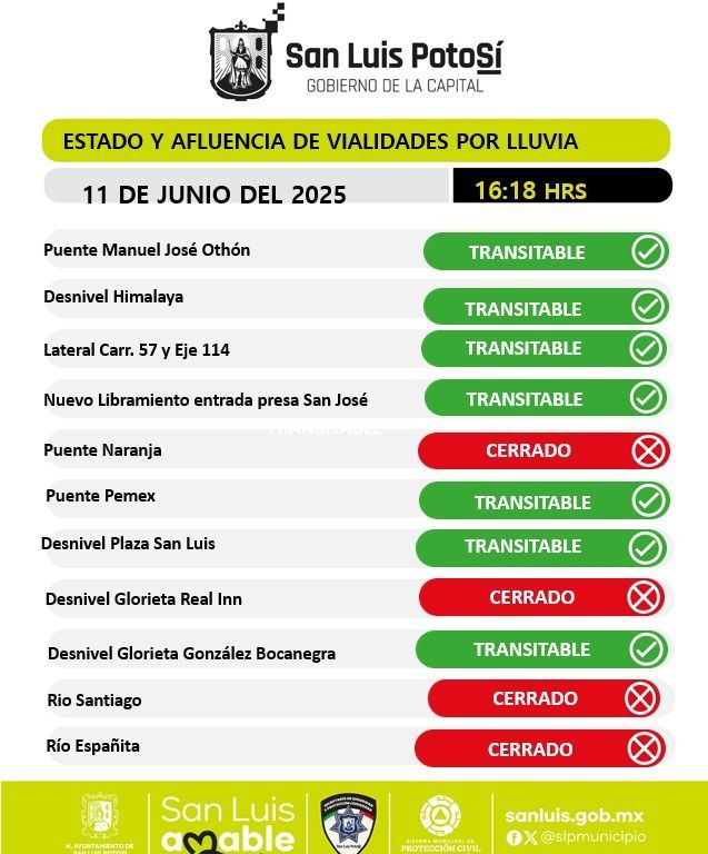 A la par, mantiene una estrategia de comunicación constante a través de sus canales oficiales en redes sociales, medios digitales y plataformas de comunicación, para que la población atienda las indicaciones ante reportes sobre calles anegadas, cierres temporales, accidentes viales o condiciones de riesgo derivadas de las precipitaciones.
