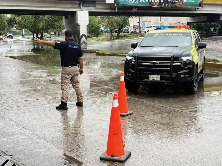 Ante la temporada de lluvias y sus efectos sobre la movilidad urbana, la Secretaría de Seguridad y Protección Ciudadana (SSPC) del Ayuntamiento de San Luis Potosí mantiene activo al personal operativo de Policía Vial, Guardia Municipal, Tecnologías y Protección Civil para atender de manera puntual a la población en traslado en las principales vialidades de la ciudad.