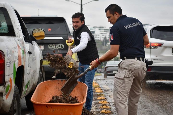 El Presidente Municipal de San Luis Potosí, Enrique Galindo Ceballos, acudió este miércoles a la glorieta de la salida a Guadalajara para supervisar los trabajos de limpieza realizados tras las lluvias extraordinarias registradas durante la mañana y mediodía de hoy. Gracias a la activación inmediata de los protocolos de atención a contingencias, la vialidad fue completamente despejada y reabierta a la circulación.