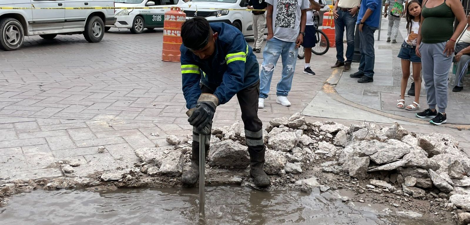 Previamente personal de la Unidad de Gestión del Centro Histórico, realizó limpieza de rejillas pluviales, que estaban obstruidas por basura y otros desechos.