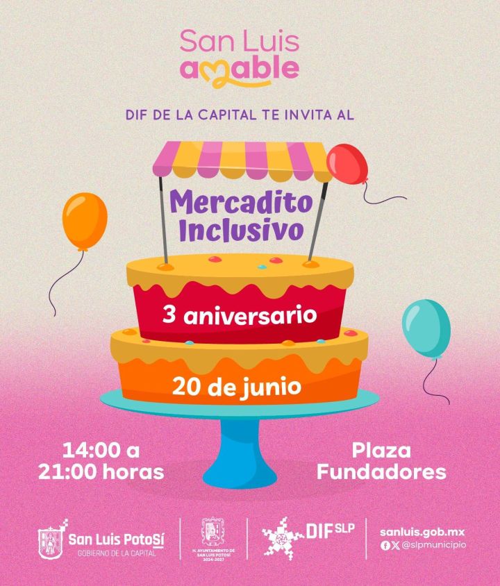 El DIF Municipal tiene el placer de invitar a toda la población a celebrar el 3er aniversario del Mercadito Inclusivo, un espacio creado con el propósito de fomentar la inclusión, autonomía e independencia de las personas con discapacidad y sus familias.