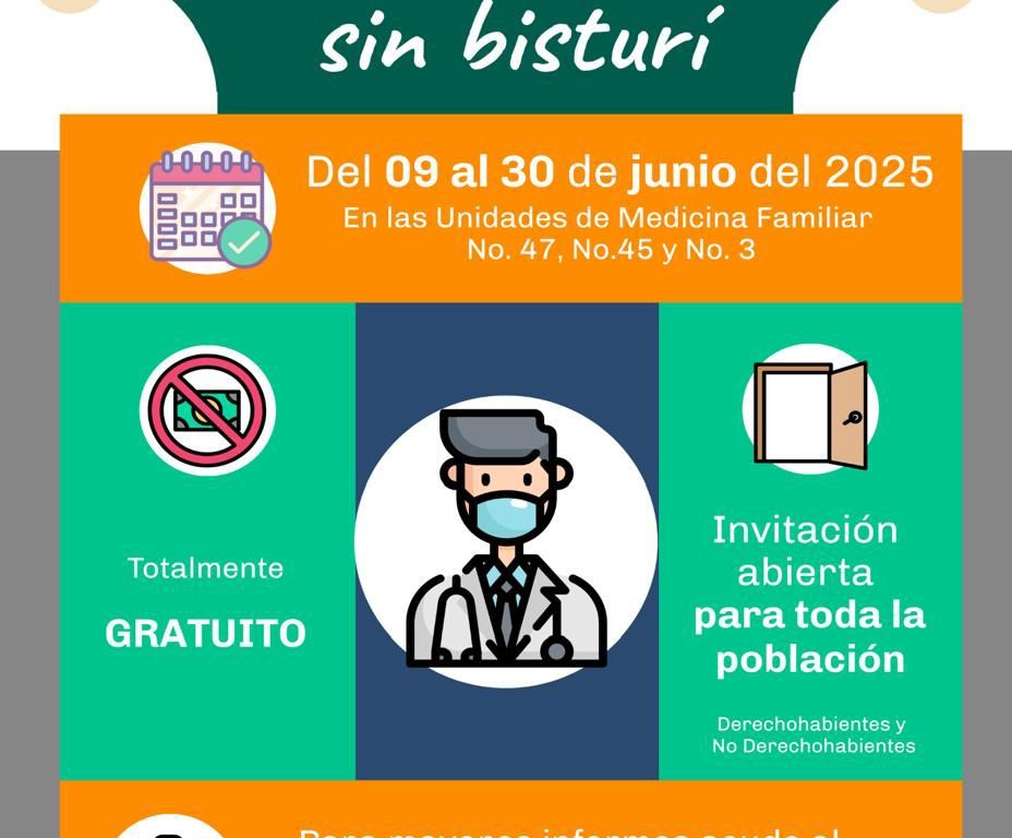 El Instituto Mexicano del Seguro Social (IMSS) en San Luis Potosí invita a la población masculina derechohabientes y no derechohabientes a las Jornadas de Vasectomía sin Bisturí que se llevan a cabo en diversas Unidades de Medicina Familiar (UMF), del 9 al 30 de junio.