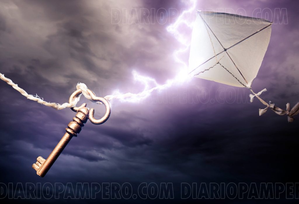 Franklin hizo volar una cometa durante una tormenta, con un hilo metálico y una llave atados a ella.