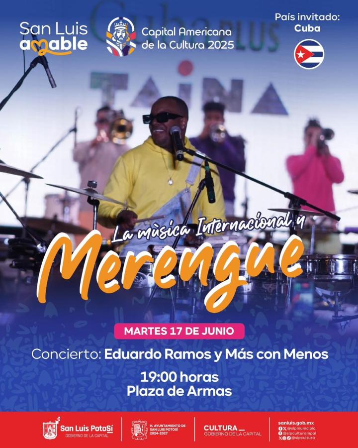 Más tarde, frente a la arquería Palacio Municipal, se presenta: “La música internacional y merengue”, con Eduardo Ramos y la agrupación Más con menos.