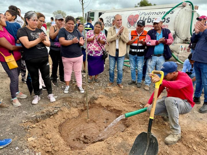 El Alcalde Enrique Galindo encabezó la transformación de un tiradero clandestino en un área limpia, reforestada y apta para el deporte, beneficiando a familias de la zona norte de la Capital; esta acción fue realizada en conjunto con la empresa Red Ambiental.