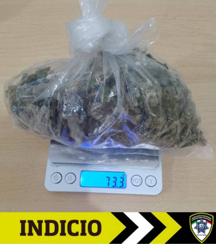 Al entrevistarse con él, los agentes de Guardia Municipal le realizaron una inspección preventiva de seguridad, encontrándole en posesión de un envoltorio de plástico que contenía 73.3 gramos de hierba seca verde con las características similares a la droga conocida como marihuana.