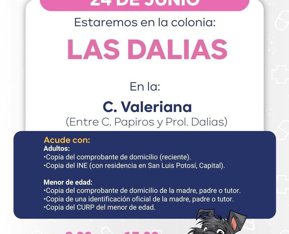 Este martes 24 de junio, estará en la colonia Las Dalias, en un horario de 09:00 a 13:00 horas, en la calle Valeriana, entre Papiros y Prolongación Dalias, para que las personas puedan acceder a servicios médicos sin costo alguno.