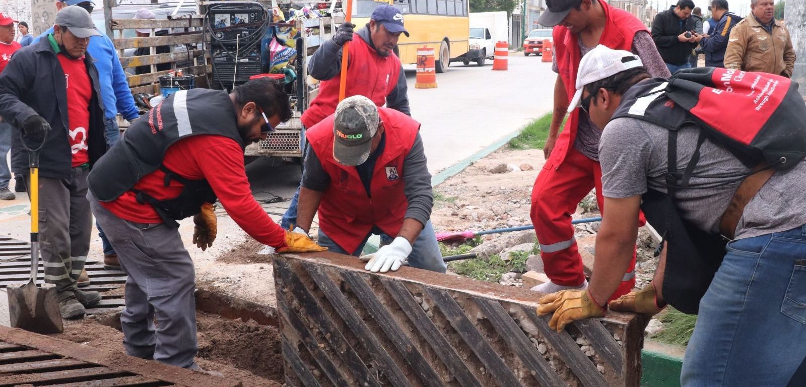 En este punto de la colonia El Aguaje, una de las zonas propensas a encharcamientos e inundaciones, personal de Servicios Municipales, con el apoyo de trabajadores de Interapas y de otras áreas municipales, retiraron las rejillas que permiten el tránsito vehicular, las cuales se encontraban obstruidas por toneladas de lodo y desechos.