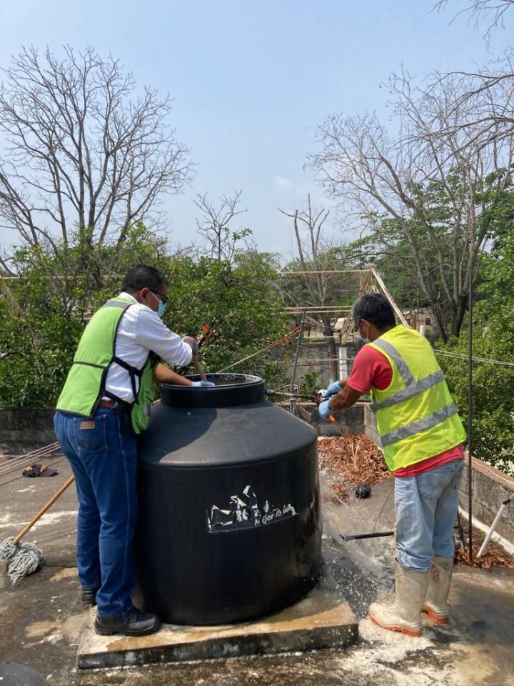 eliminación de envases y basura alrededor de la vivienda, limpieza de caletas y recodos de desagüe de manera periódica a fin de evitar que el agua se estanque, organizar los patios y techos de tal manera que se encuentren limpios sin ningún recipiente que pueda contener agua por lo que respecta a aljibes, tinacos, cisternas, piletas y tambos de almacenamiento se recomienda realizar la limpieza y desinfección de los mismos con agua y cloro y mantenerlos tapados en todo momento.