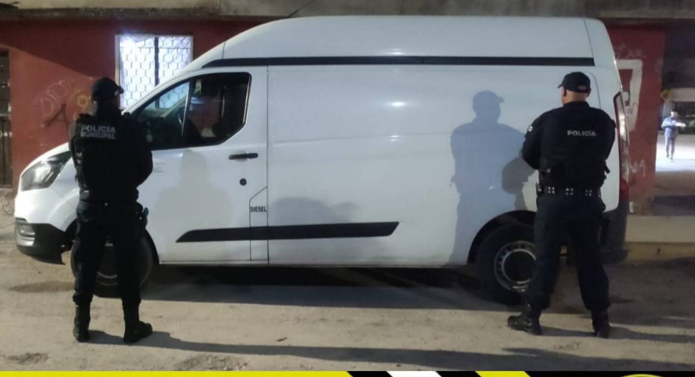 Agentes municipales tuvieron conocimiento del reporte de robo con violencia de una camioneta marca Ford Transit Custom color blanco, con placas del Estado de México y con la leyenda de la empresa “Transportes Silva”, con la que, a decir de los propietarios, se había perdido comunicación del GPS el cuadrante norte de la ciudad.