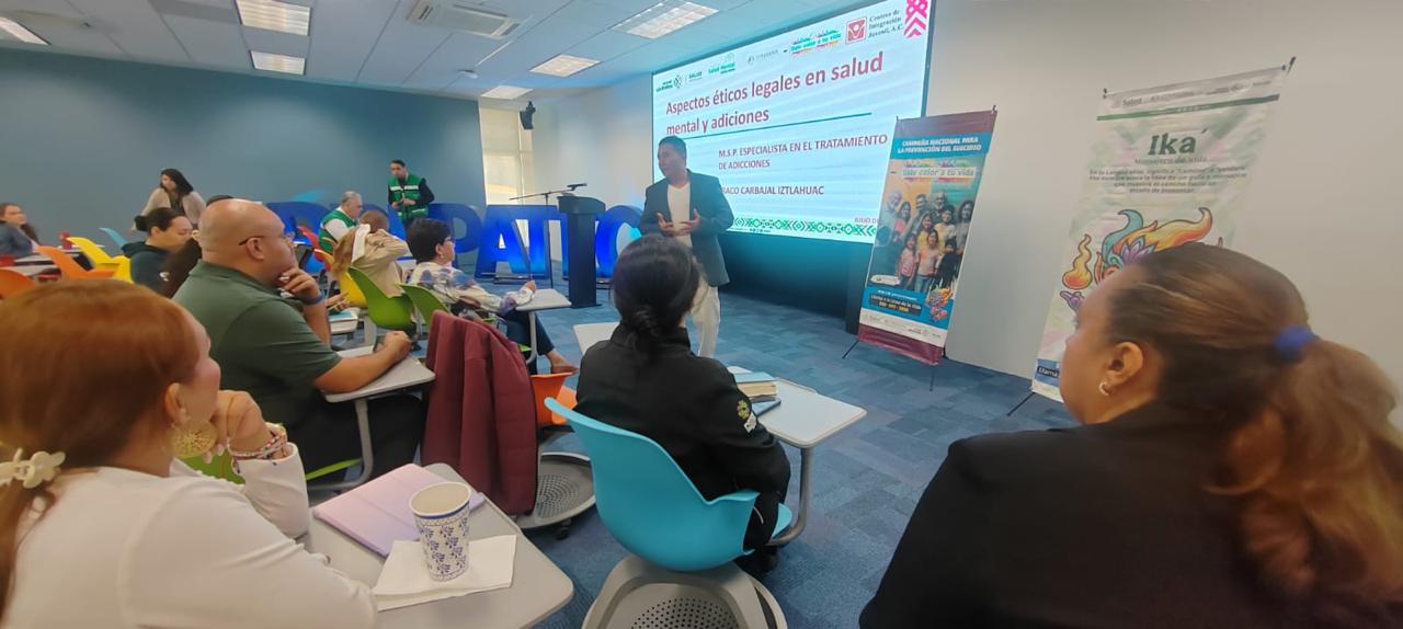 La sede de la reunión fue el Auditorio del Tecnológico de Monterrey, en donde también se impartió la ponencia “Aspectos éticos legales de la práctica profesional en salud mental y adicciones”, para comprender su impacto en la práctica profesional, los derechos de los pacientes y el marco normativo que regula estas intervenciones en el ámbito sanitario. También se habló del Principio de igualdad y no discriminación en salud mental y adicciones; y se capacitó sobre el reporte de las acciones institucionales de la campaña nacional de prevención del suicidio «Dale color a tu vida», esto para garantizar que se brinde un servicio confidencial, igualitario, libre de discriminación y estigmatización a la población.