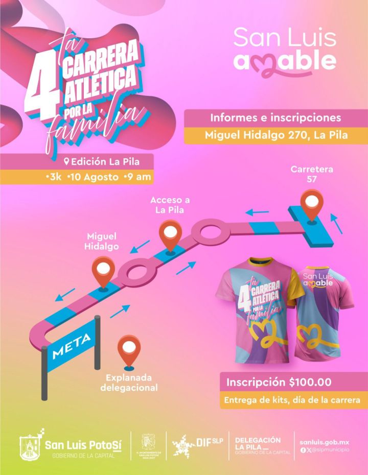 Tras el rotundo éxito de la cuarta edición de la “Carrera por la Familia”, organizada por el DIF Municipal de San Luis Potosí, llegará a la Delegación La Pila, como parte del esfuerzo por extender esta gran iniciativa a esta demarcación.
