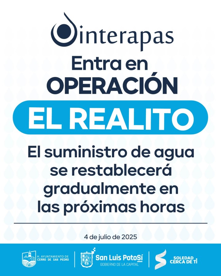 Para más información, los usuarios pueden comunicarse a la línea Acuatel 444 123 6400 o consultar las redes sociales oficiales de INTERAPAS.