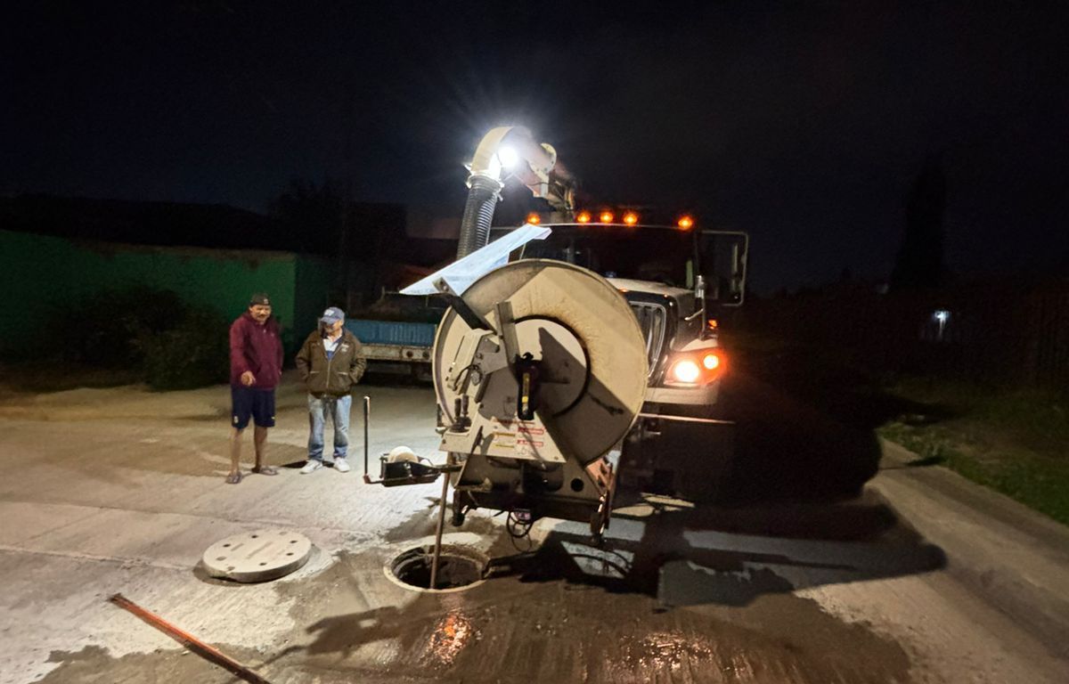 Como parte de las acciones preventivas ante la temporada de lluvias, personal de la Subdirección de Drenaje y Alcantarillado de INTERAPAS, llevó a cabo trabajos nocturnos de limpieza en la avenida Estrella de la colonia Garita de Jalisco.