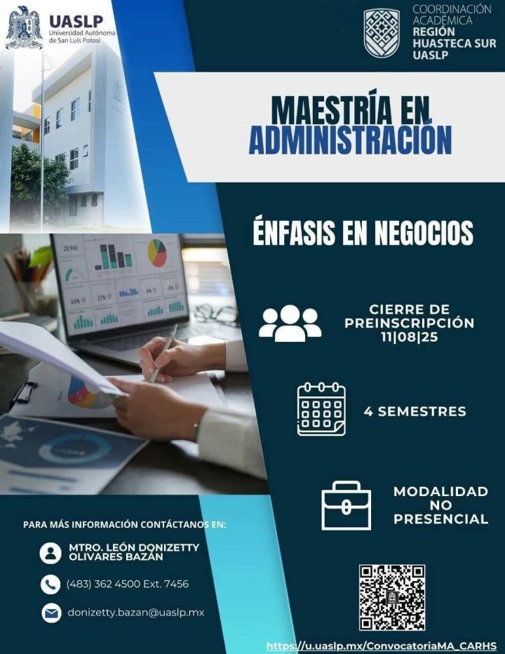 La nueva maestría en línea en Administración con Énfasis en Negocios de la Universidad Autónoma de San Luis Potosí (UASLP) ha tenido una excelente recepción desde la publicación de su convocatoria, de acuerdo con el maestro Oscar Fernández Pérez Tejada, director de la Coordinación Académica Región Huasteca Sur (CARHS).