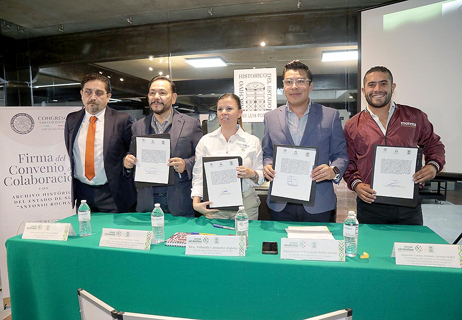 Con el propósito de establecer las bases generales y mecanismos operativos de colaboración en los campos de la investigación y los servicios de apoyo jurídico y tecnológico, el Congreso del Estado de San Luis Potosí y el Archivo Histórico del Estado “Antonio Rocha”, firmaron un Convenio de Colaboración para impulsar cursos de capacitación, conferencias, seminarios, diplomados, talleres.