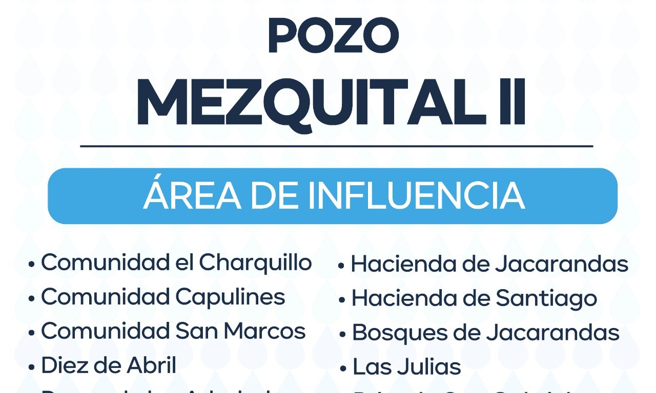 Con su puesta en marcha, se comenzará a regularizar el abasto en las zonas de Comunidad El Charquillo, Hacienda de Jacarandas, Capulines, Hacienda de Santiago, Comunidad San Marcos, Bosques de Jacarandas, Diez de Abril, Las Julias, Paseo de las Arboledas, Privada San Gabriel, Arboledas de Jacarandas y Diez de Julio.