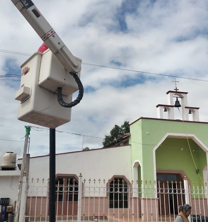 Por indicaciones del Alcalde Enrique Galindo Ceballos, el Gobierno Municipal de San Luis Potosí realizó trabajos de mantenimiento correctivo en el circuito de alumbrado del Jardín de la Iglesia en la comunidad de Cerritos, perteneciente a la Delegación de La Pila.