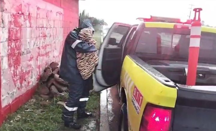 Como parte de los patrullajes preventivos, elementos de Policía Vial realizaron cortes a la circulación en zonas con encharcamientos severos y flujo considerable de agua pluvial, principalmente en el camino a la comunidad de La Chora y en la carretera a Cerritos.