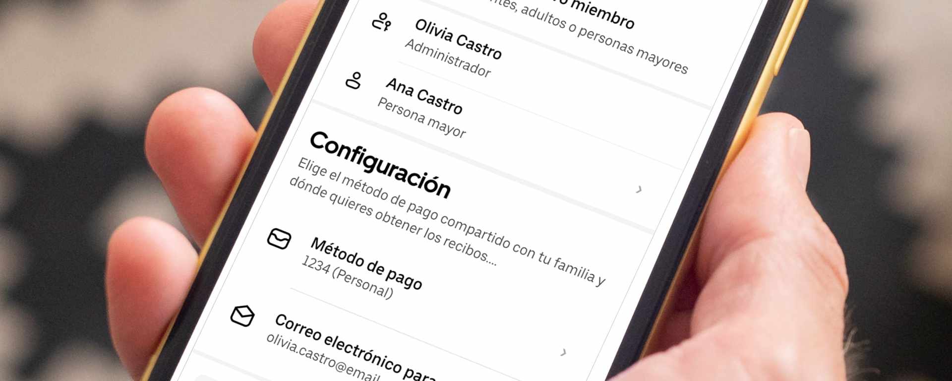 La opción de cuentas para Personas Mayores se aloja dentro del Perfil Familiar, ofreciendo una app simplificada y seguimiento en tiempo real para familiares.