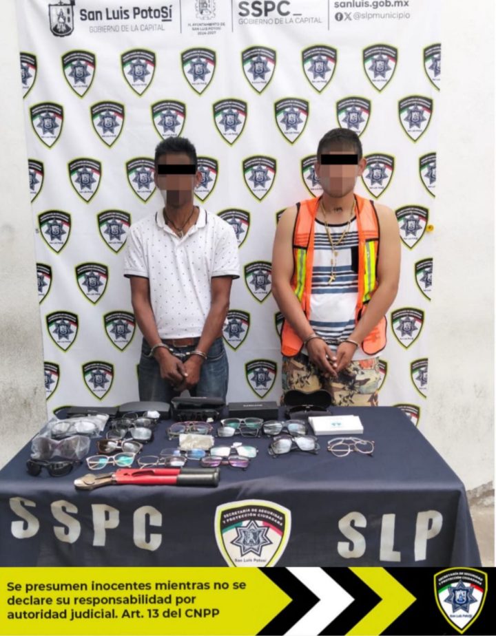Como parte de las acciones de inteligencia social realizadas por la Secretaría de Seguridad y Protección Ciudadana (SSPC) de la Capital, se logró la detención de dos individuos presuntamente responsables del robo de mercancía a una óptica en la avenida Venustiano Carranza. Los implicados fueron localizados en el cuadrante centro de la ciudad en posesión de cerca de 30 lentes.