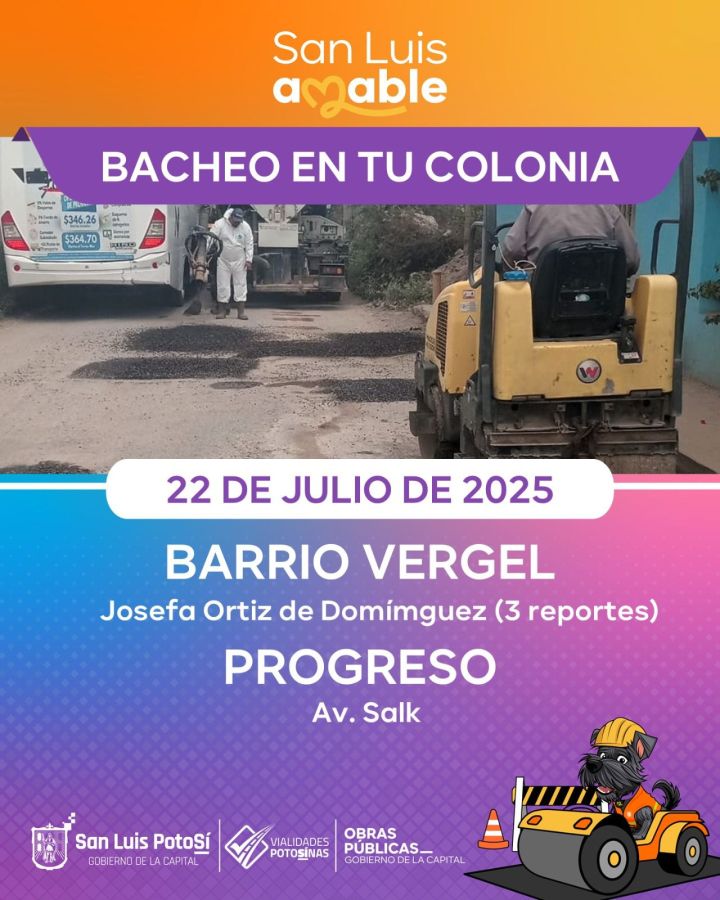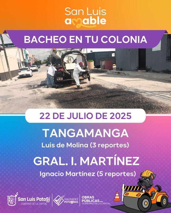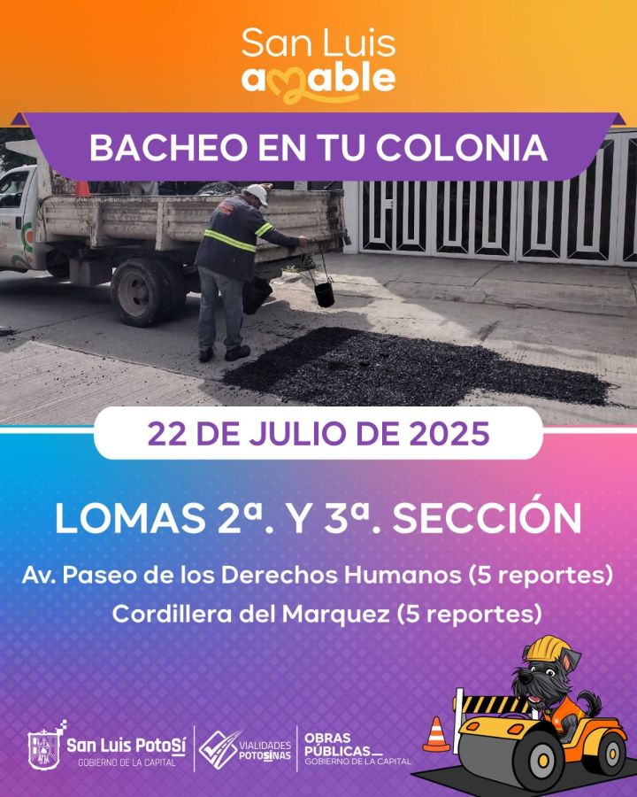 Como parte de la estrategia de atención emergente ante las afectaciones provocadas por la temporada de lluvias, el Gobierno Municipal de San Luis Potosí, a través de la Dirección de Obras Públicas, ha intensificado los trabajos del programa Bacheo Emergente, con el firme compromiso de conservar en buenas condiciones la infraestructura vial y proteger la seguridad de quienes transitan por la ciudad.