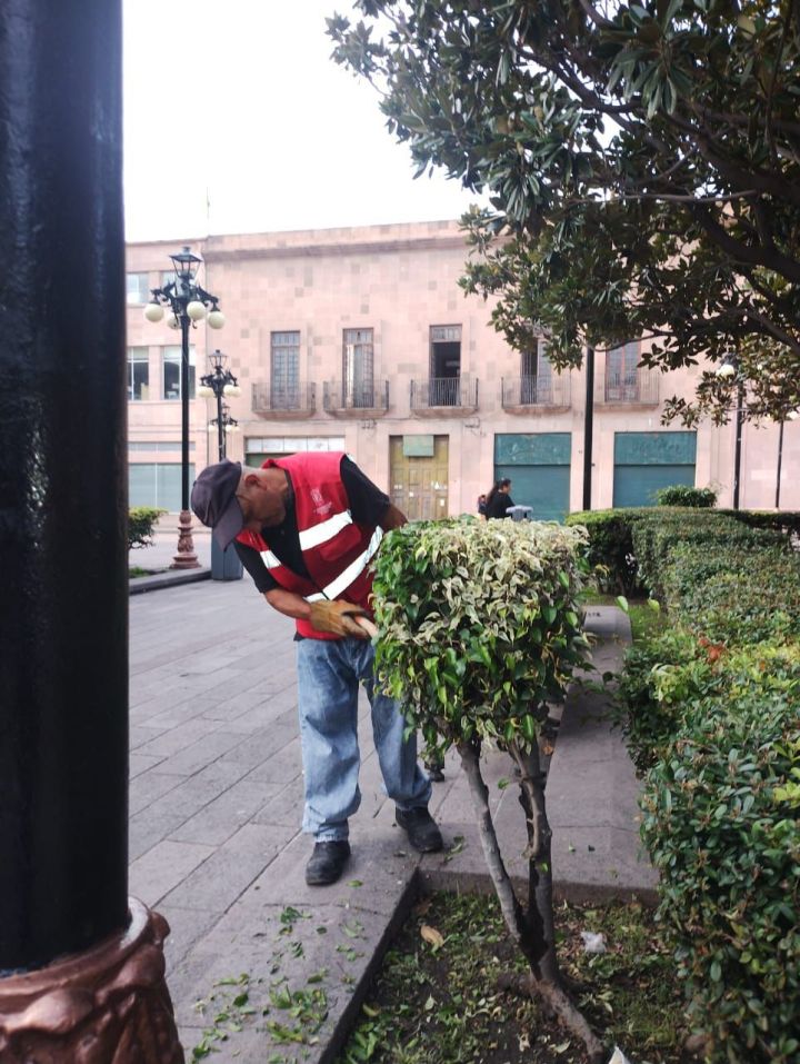 La Dirección de Servicios Municipales del Ayuntamiento informó que en las últimas horas se realizaron diversas labores en el primer cuadro, entre ellas tareas de limpieza y mantenimiento en espacios como la Explanada Ponciano Arriaga, Plaza Aranzazú, Plaza de Armas y la Alameda.