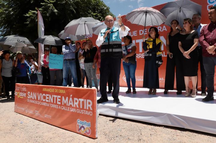 El alcalde de San Luis Potosí, Enrique Galindo Ceballos, dio inicio a las obras de pavimentación de la calle San Vicente Mártir, ubicada en la colonia División del Norte, como parte de la edición 293 del programa «Capital al 100» que busca mejorar la infraestructura urbana en el municipio. El Presidente Municipal destacó la importancia de transformar calles de tierra en vialidades dignas, con el objetivo de mejorar la calidad de vida de los habitantes. La obra contempla equipamiento integral de la calle, incluyendo red hídrica, de drenaje, banquetas, guarniciones y rampas para personas con discapacidad, además de la pavimentación con concreto hidráulico.